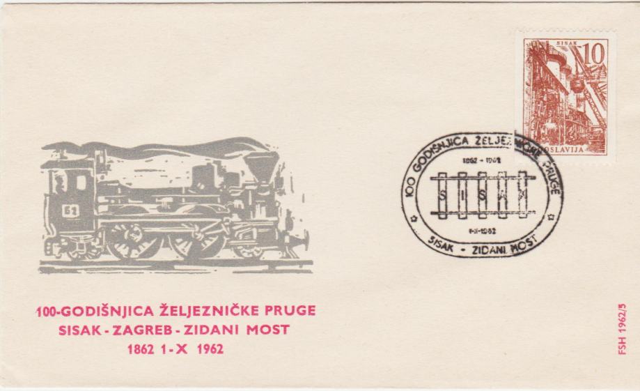 PRILOŽ.PISMO 100let proge SISAK-ZIDANI MOST 1862-1962"(JUGOSLAVIJA)UNC