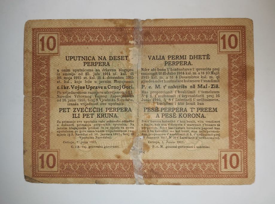 Prodam bankovec 10 perperjev Črna Gora 1917.
