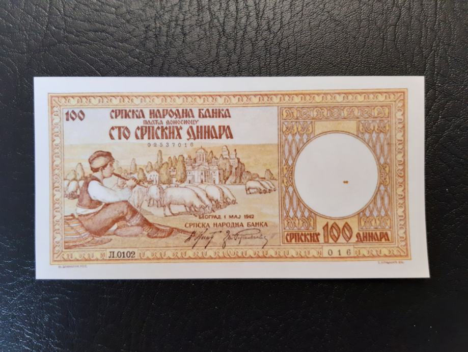Prodam bankovec 100 dinarjev, 1942, (ovčice) UNC, ponaredek orginala