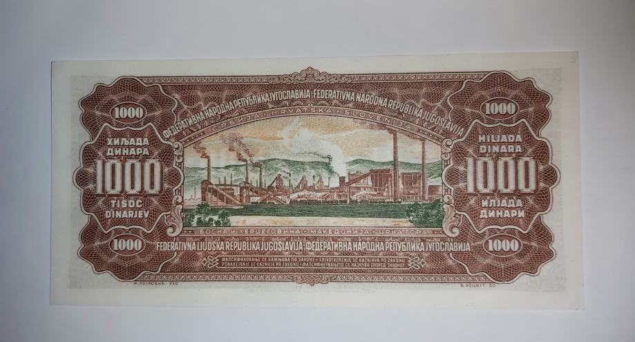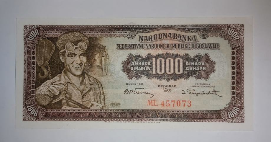 Prodam bankovec 1000 dinarjev 1955 aUNC.