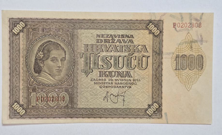 Prodam bankovec 1000 kun 1941 aUNC.