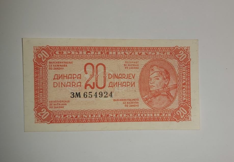 Prodam bankovec 20 dinarjev 1944 aunc.