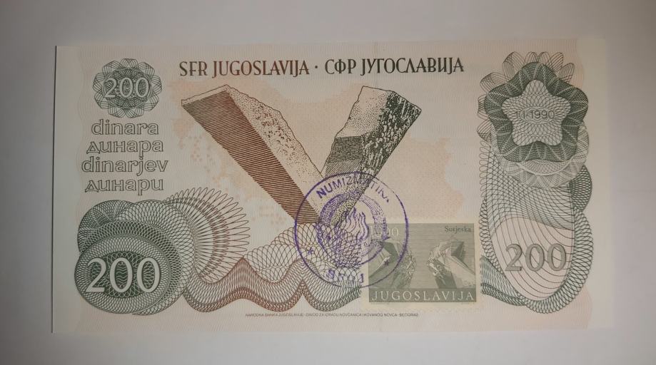 Prodam bankovec 200 dinarjev 1990 z znamko.