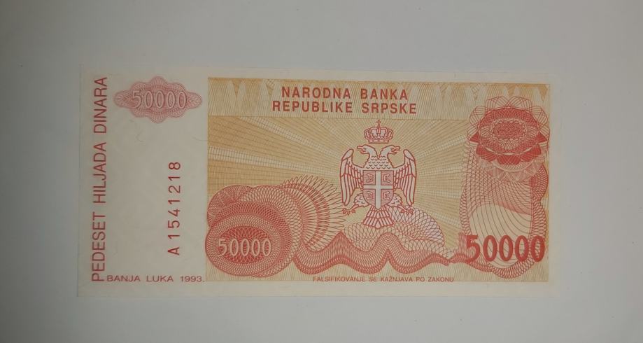 Prodam bankovec 50000 dinarjev 1994 Banja Luka.