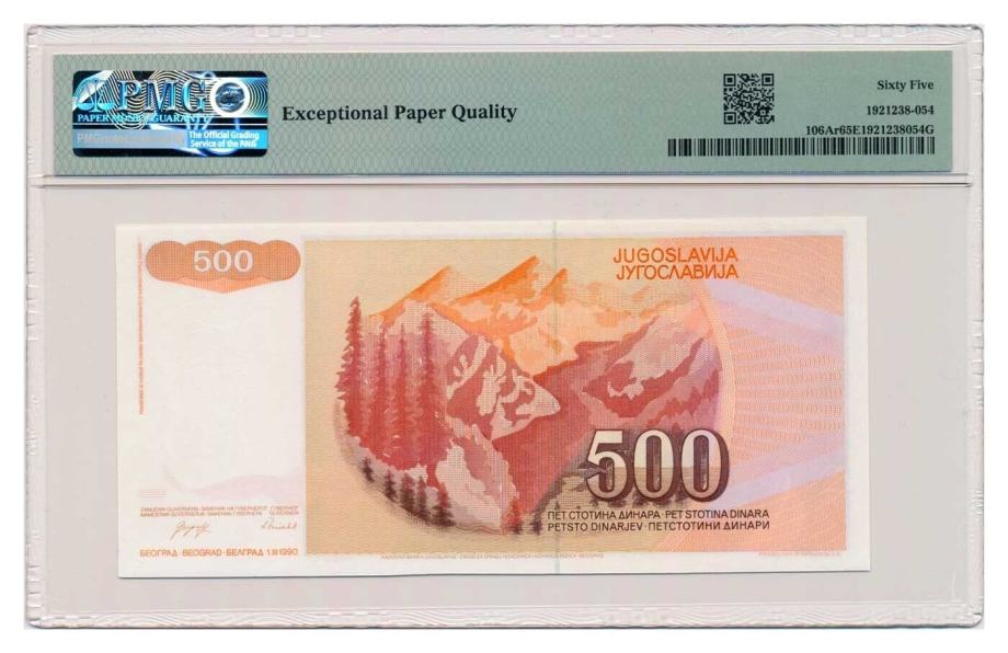 SFR Jugoslavija 500 DIN 1990 UNC rumen neizdan bankovec