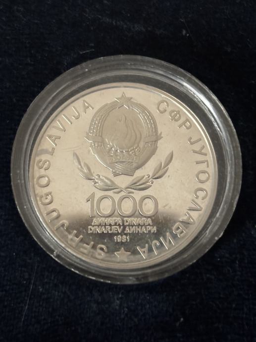 gre za jugoslovanski spominski kovanec za 1000 dinarjev iz leta 1981, izdan ob 40. obletnici narodnoosvobodilnega boja (1941–1981), s podobo Josipa Broza Tita.Neobtočen / UNC