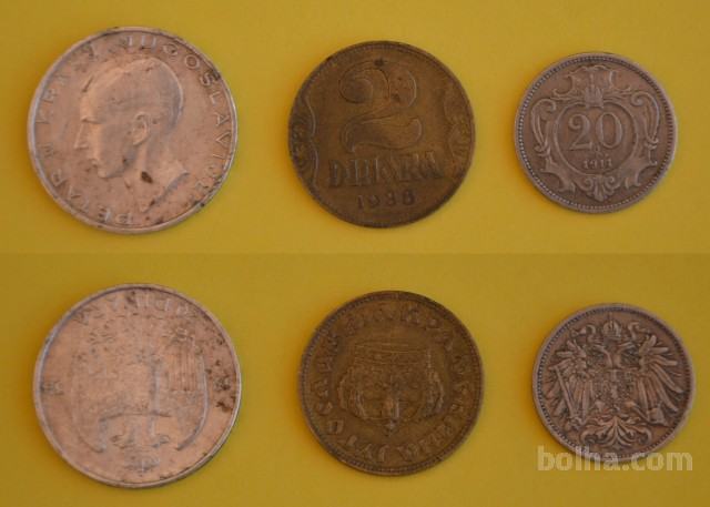 20 dinarjev in 2 dinarja Kraljevine Jugoslavije (1938) in en avstrijski kovanec