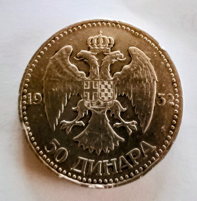 Srebrnik 50 dinarjev 1932 Kraljevine Jugoslavije.