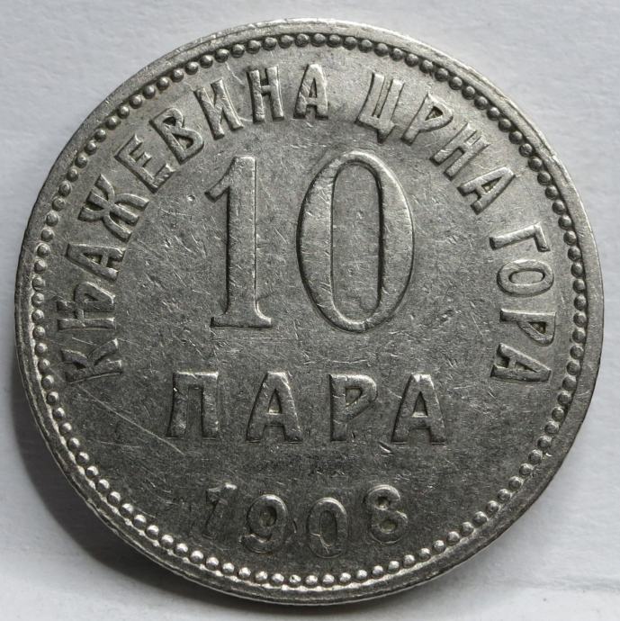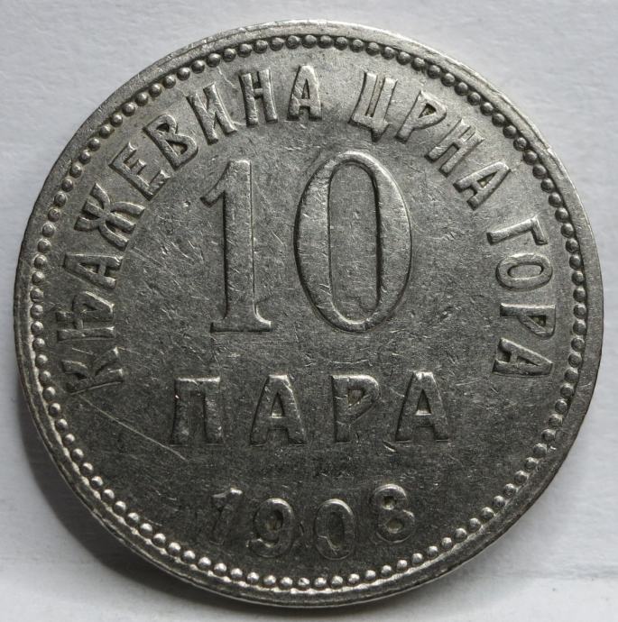 Lepo ohranjen kovanec za 10 Para Kraljevine Črne Gore letnik 1908.