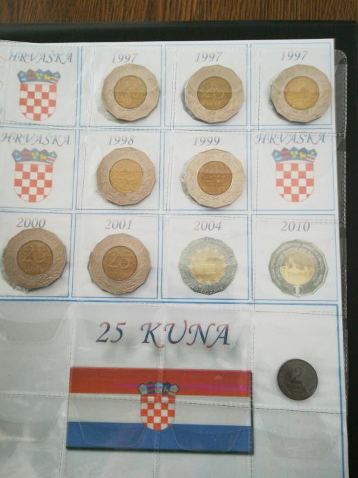 Prodam zbirko hrvaških lip in kun v usnjenem albumu. Manjka 11 kovancev. V zbirki je tudi 7 priložnostnih kovancev za 25 kun, in sicer: