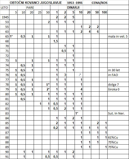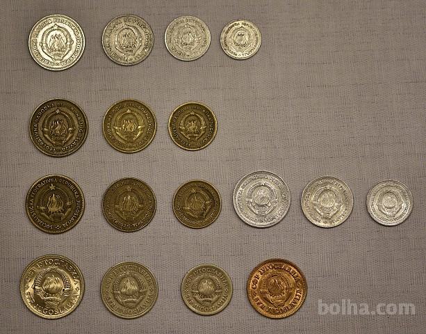 Prodam jugoslovanske obtočne kovance z letnicami od 1945 do 1991, kvalitete lepi do odlični.