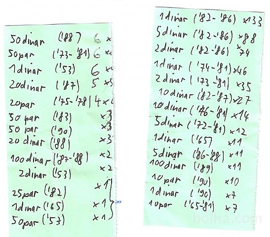 kovanci dinarjev in pare iz Jugoslavije od leta 1965 do 1990,od 0,40 € naprej za kos (cca 2,5kg ) prodam. Celje, gsm 040/607808