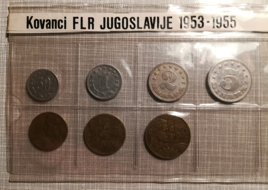 Prodam komplet lepih ohranjenih kovancev FLR Jugoslavije od leta 1953 do 1955. Kovanci so v plastičnem ovitku in so naslednji: