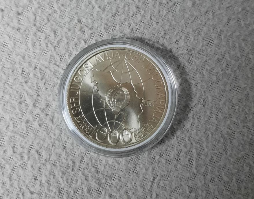 Prodam velik srebrni kovanec 1000 dinarjev 1980 (TITO). Kovanec je bil izdan ob smrti našega bivšega predsednika.