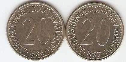 20 dinarjev 1986,87 več kosov - cena za kos.