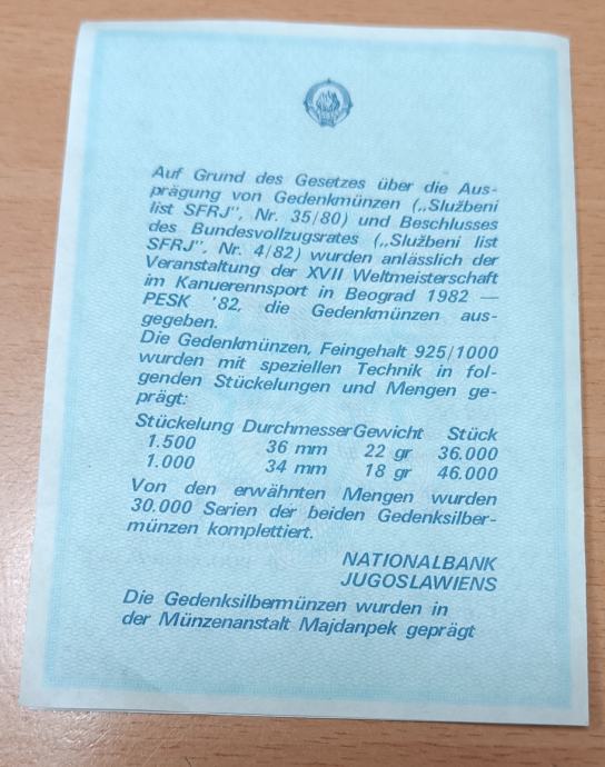 - 1000 DINARJEV TEŽA 18g/0.925 PREMER:34mm.