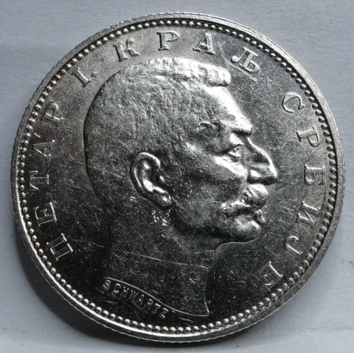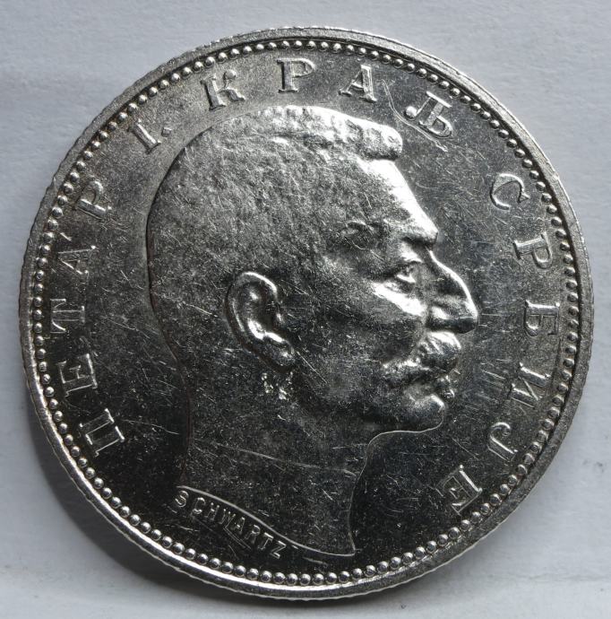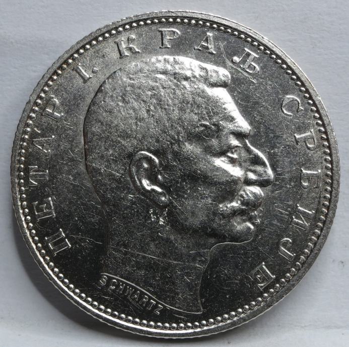 Kraljevina Srbija Jugoslavija 1 Dinar 1912 XF Srebro Kralje Peter P20