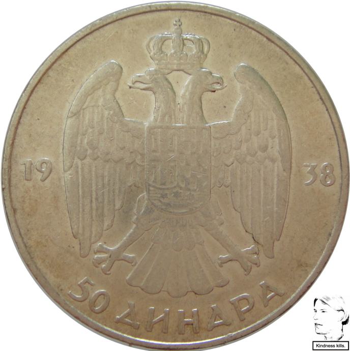 LaZooRo: Jugoslavija 50 Dinara 1938 XF / UNC - Srebro