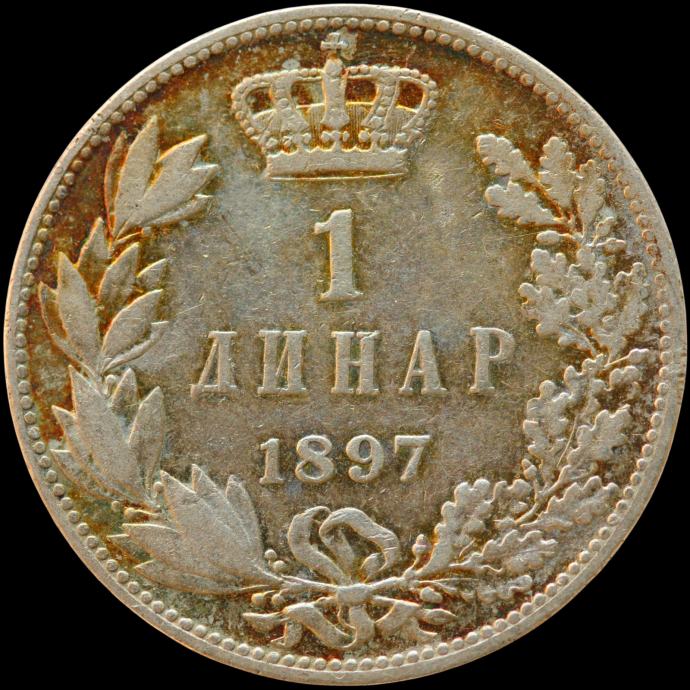 LaZooRo: Srbija 1 Dinar 1897 XF / UNC mavrica - srebro