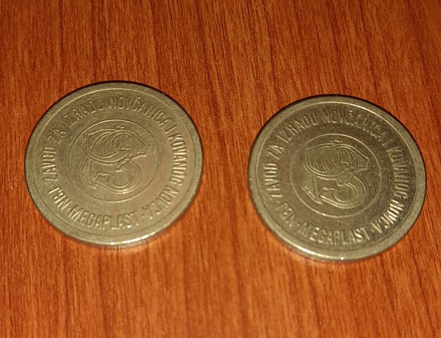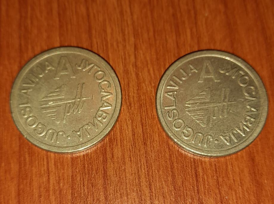 2 x PTT žeton tip A Jugoslavija - Megaplast.