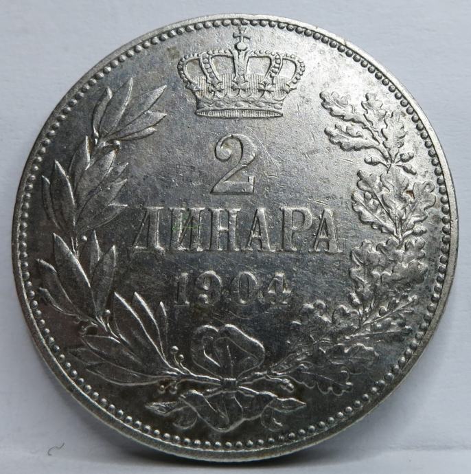 SRBIJA Jugoslavija 2 Dinara Dinarja 1904 XF Srebro Kralj Peter I #E23