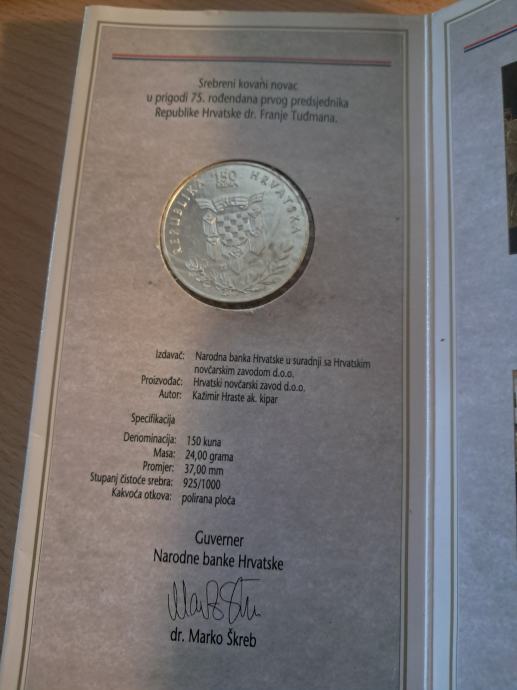Prodam srebrnik Hrvaške Franjo Tuđman 150 kuna