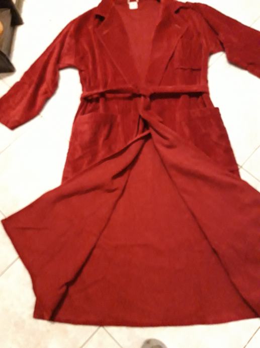 Ugodno prodam nerabljeno jutranjko, rdeče barve, spredaj dva večja žepa, eden manjši, velikost 48 (kljub navedeni veliki velikosti, je primerna že za velikost od 42 naprej, saj so jutranjke ohlapna oblačila), 100% bombaž.