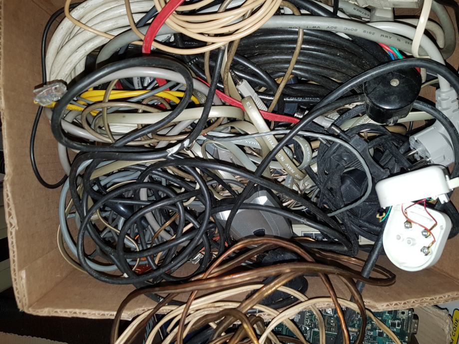 Raznorazni s konektorji ,video, audio racunalnistvo telefonija drobni ,debeli z eno ali veliko zicami oplasceni neoplasceni etc. Imam tudi nekaj starih in novejsih raznoraznih vezij oz.plat ekrani tv radio avtoradio kasetofoni printerji motorcki stikala mikrostikala preklopniki upori zicni upori veliki releji kondenzatorji fedri tranzistorji etc.