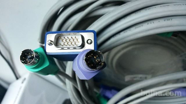 4 kose (dva kabla sta 3 in dva 4m) KVM povezovalnih kablov za povezovanje računalnika na KVM stikalo, s priključki za miško, tipkovnico (PS/2 tip 6-pin mini) in zaslon (15-pin HDDB tip). S KVM stikali imate možnost kontrole in upravljanja več PC-jev z samo eno tipkovnico, monitorjem in miško. Osebni prevzem ali po pošti na stroške kupca, možnost nakazila preko TRR (strošek pošte za odkupnino v tem primeru odpade).
