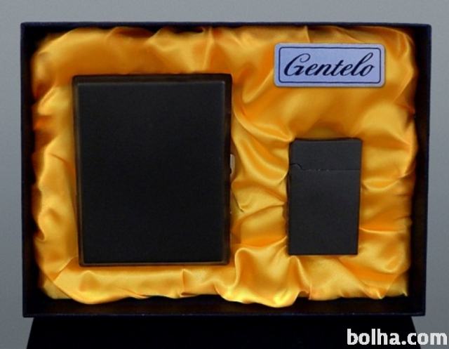Črna mat kovinska cigaretnica za 20 cigaret in vžigalnikom,ter lična embalaža primerna za darilo.