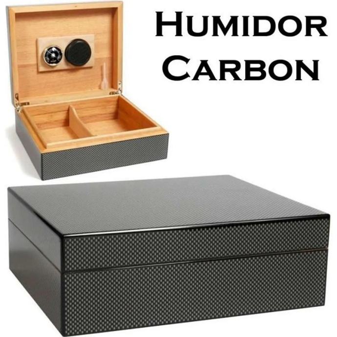 Eden najlepših humidorjev s kapaciteto 25 ci-gar. Ni treba posebej poudarjati, da je zaradi sijočega karbonskega zaključka njegova estetika zelo prefinjena. Ima tudi antistatičen premaz.