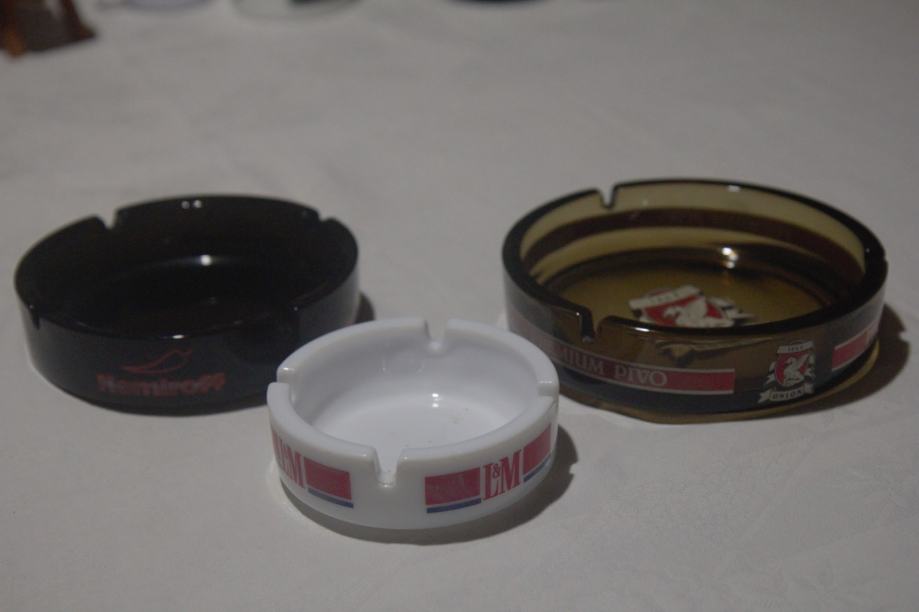 Prodam 3 različne reklamne pepelnike, premera 11, 15 in 16 cm. Cena je za komad, vsi trije 20€.