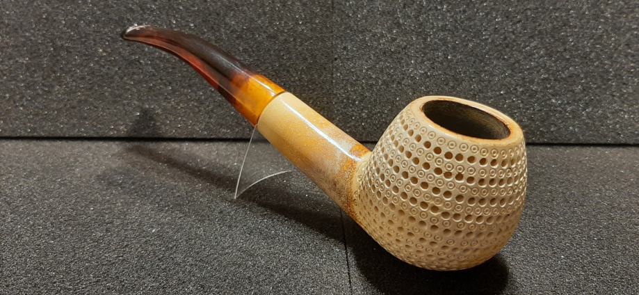 Prodam vrhunsko v celoti ročno izdelano tobačno kadilsko pipo fajfo iz svoje velike zbirke - BLOCK MEERSCHAUM, model gigant egg v fini rezbarjeni izvedbi. Čudovita, povsem ročno izdelana pipa iz kompaktne (blok) morske pene, kamnine magnezijevega silikata, ki je izjemno vpojen material, odporen na vročino, ki zagotavlja kar najbolj suh občutek med uporabo in deluje kot filter. Posebnost magnezijevega silikata je v tem, da je izjemno odporen na temperaturo (4500 stopinj Celzija) ne glede na temperaturo in vlago v okolici. Posebnost meerschauma je, da ko je nov, nerabljen, je snežno bel, a se z uporabo sčasoma unikatno pobarva sam od sebe od znotraj navzven, kar je posledica katrana, olj, gorenja tobaka, ki ga meerschaum učinkovito filtrira in vpija. Bolj ko jo uporabljamo, temnejša postaja, ni neobičajno, da redna raba meerschaum pipe, stare 100 in več let povzroči bogat, kostanjevo rjav odtenek v različnih intenzitetah. Pripomniti velja, da je obarvanost posledica vpojnosti meerschauma, kar pomeni, da se pipa obarva v celoti, ne le na površini in počasi spreminja barvo od znotraj navzven. Nikakor pa ne moremo vplivati na način, hitrost in intenzivnost obarvanja. Za to poskrbi izključeno mati Narava. Nekateri bloki meerschauma se obarvajo hitreje, enakomerneje, intenzivneje, drugi manj, odvisno od pogostosti rabe, vrste tobaka in predvsem globine iz katere je bil meerschaum izkopan, kar vpliva na poroznost materiala. Ravno to daje zanimivost tej izjemni kamnini, tako v zbirateljskem, kot praktičnem smislu. Meerschaum pipe brez skrbi lahko uporabljamo bodisi v mrazu, bodisi v vročini pri visoki vlažnosti, vedno bo zagotavljala vrhunski užitek.