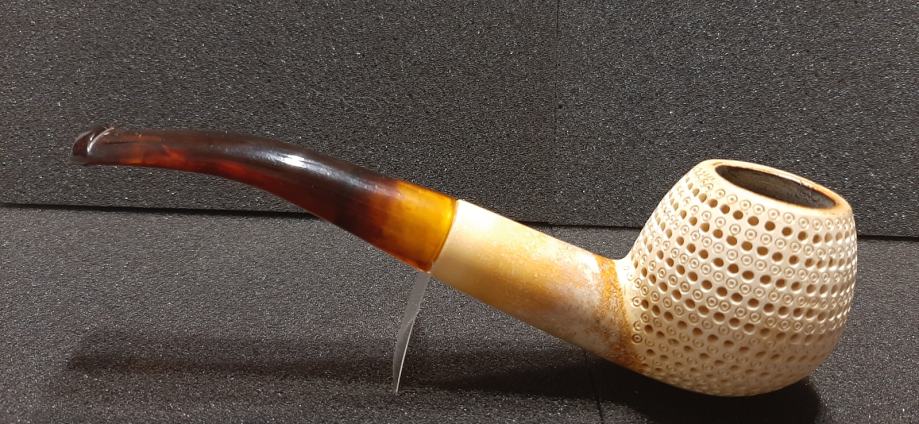 Pipa je bila narejena v Turčiji, kjer je tovrstno rokodelstvo iz meerschauma tradicija. Splošno znano je, da je turški meerschaum zelo redka in najbolj kakovostna tovrstna kamnina na svetu, ker je izjemno porozna in lahka hkrati, kar pomeni, da jo lahko uporabljamo praktično neomejeno in se ne bo "utrudila" - napila vlage in kondenza, kot velja pri lesenih pipah iz briarja, kjer je po dveh bovlah zapored pipa že preveč vlažna za nadaljno rabo in mora zato počivati, da se posuši. Ni neobičajno, da je vsak dan znova po 7-8 ali več bovlah iz meerschaum pipe občutek med rabo še vedno prijetno suh, brez "grgranja" pipe.