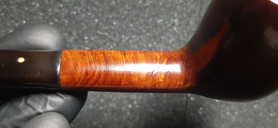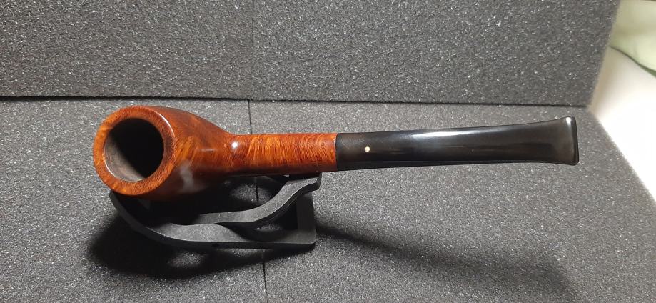 Gre za Dunhillovo pipo iz linije Bruyere, izdelane leta 1961, grupa 4 (srednje velika bovla). Ustnik je ročno izrezan in oblikovan, kot nov, iz ebonita, zato ne bo odveč, če ga enkrat mesečno rahlo premažemo z olivnim ali sončničnim oljem, da ohranimo intenzivno črnino ebonita in prepreči