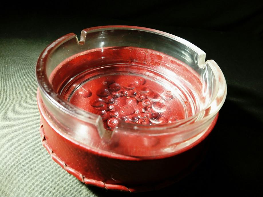 Prodam vintage pepelnik oblečen v rdeče usnje. Zelo lepo ohranjen. Premer 11 cm.