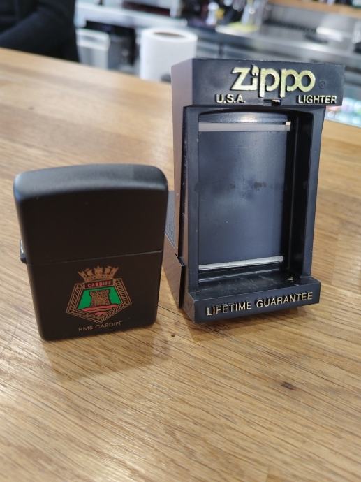 Prodam Zippo užigalnik iz Angleške fregate HMS Cardiff-Užigalnik nikoli uporabljen,nikoli napolnjen.Kupljen na fregati pred leti ko je bila barka na obisku v luki Koper.