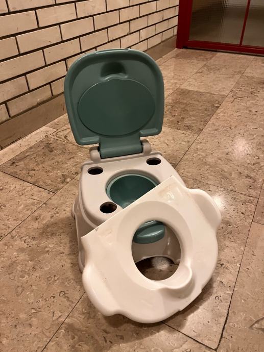 združuje 3 funkcije - kahlica, nato se sedežni obroč prestavi na WC školjko za odrasle, na koncu pa se lahko uporablja kot preprosta stopnička za umivanje rok.