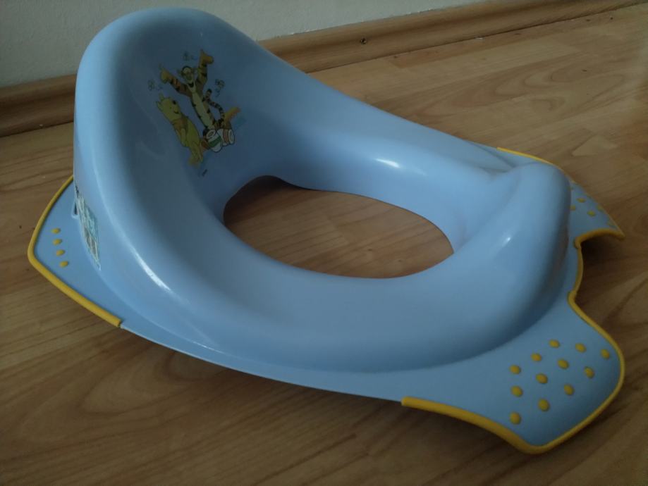 Prodamo lepo ohranjen nastavek za straniščno školjko / wc, in sicer v svetlo modri barvi z motivom medvedka Pu-ja.