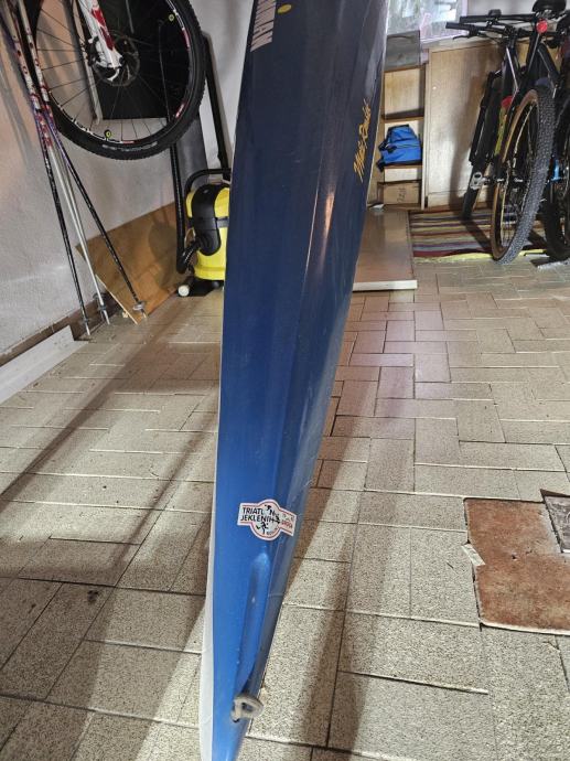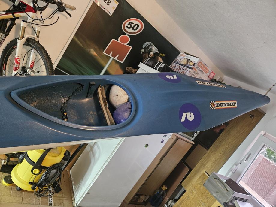 Prodam starejši kajak za spust, primeren za Triatlon jeklenih. Čoln je nepoškodovan. Dodam obojestranko veslo. Širina sedeža je 38 cm, dolžina 64 cm. Sam imam 77 kg in sem visok 181 cm, z lahkoto sem sedel v kajak. Opora za noge je nastavljiva.