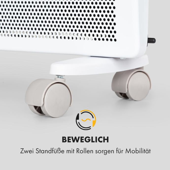 * Dvakrat dobro: zmogljiva tehnologija konvekcije segreva zrak in infrardeče sevanje zagotavlja takojšen občutek toplote na koži * Brezčasna: zaradi preproste zasnove je primerna tako za sodobne kot klasične bivalne prostore * Individualno in jasno: učinkovito ogrevanje zahvaljujoč programiranemu tedenskemu merilniku in velikemu LED zaslonu * Konec hladnih stopal: velika ogrevalna moč 2000 W hitro zaustavi mraz * Premično: dve nogi s kolesi zagotavljata mobilnost * Izjemno varen: zahvaljujoč zaščiti pred pregrevanjem in otroški varnostni zaklep
