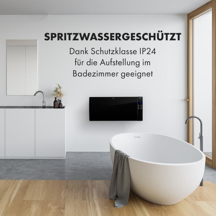 Prijetna toplota in diskretna eleganca: grelec Klarstein Lindholm zagotavlja enakomerno povišanje temperature in razporeditev ogrevanega zraka v prostorih do 40 m2.Z dvema stopnjama ogrevanja - 1000 ali 2000 W - bo konvekcijski grelec Lindholmov ogreval vaše prostore do temperature 40 °C. S termostatom lahko natančno nastavite prijetno temperaturo. Praktični časovnik lahko nastavite v urah in, odvisno od nastavitev, se ogrevanje izklopi na minuto natančno. Steklena plošča naprave Klarstein Lindholm je odporna na brizganje vode in zato lahko zagotovi optimalno temperaturo tudi v vaši kopalnici. Ukrivljena oblika iz zaobljenega varnostnega stekla daje Lindholmu izjemno eleganten videz in hkrati izboljša porazdelitev toplote v prostoru.Naprava Lindholm se upravlja prek zaslona na dotik na desni strani stekla ali zelo priročno prek daljinskega upravljalnika. Otroška ključavnica in vgrajena zaščita pred pregrevanjem zagotavljata potrebno varnost. Zagotovljena je tudi prilagodljiva uporaba naprave: Konvekcijski grelec Klarstein Lindholm lahko s priloženim pritrdilnim materialom pritrdite na stene za prihranek prostora ali pa ga uporabite kot samostoječo napravo s priloženimi kolesci.Grelec Klarstein Lindholm se prilagodi vsakemu prostoru in poskrbi za prijetne notranje temperature - ne glede na to, kako mraz je zunaj.