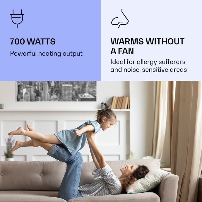 Greje brez ventilatorja: odličen za alergike in prostore, občutljive na hrup.