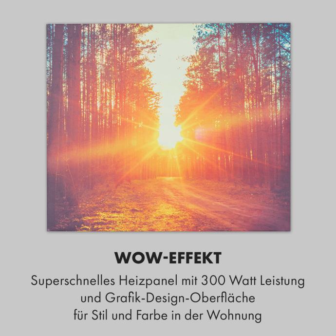 Infrardeči grelnik Klarstein Wonderwall Air Art Infinite predstavlja revolucijo v ogrevanju s sodobno tehnologijo. Super ravno ogrevalno ploščo lahko obesite kot sliko neposredno na steno. Z močjo 300 W uporablja načelo sončne toplote zahvaljujoč tehnologiji IR ComfortHeat: namesto počasnega segrevanja zraka oddaja prijetno infrardeče sevanje, ki neposredno segreva ljudi in predmete na površini 6 m². Vaš novi infrardeči grelnik je izjemno energetsko učinkovit: kar 98 % porabljene energije se pretvori v toplotno sevanje. In ker naprava Wonderwall deluje le s toplotnim sevanjem, ne dviguje prahu in ne povzroča hrupa, je idealna izbira za alergike in za uporabo v prostorih, občutljivih na hrup, kot so pisarne ali spalnice. Zaradi svoje oblikovane površine z grafičnim potiskom ni le vir toplote, temveč tudi dekorativna paša za oči v vsakem prostoru.
