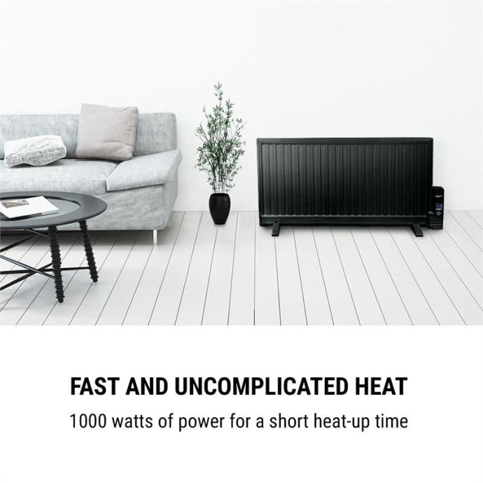 Wallander, oljni radiator, 1000 W, termostat, oljno ogrevanje, ultra ravna oblika, črna