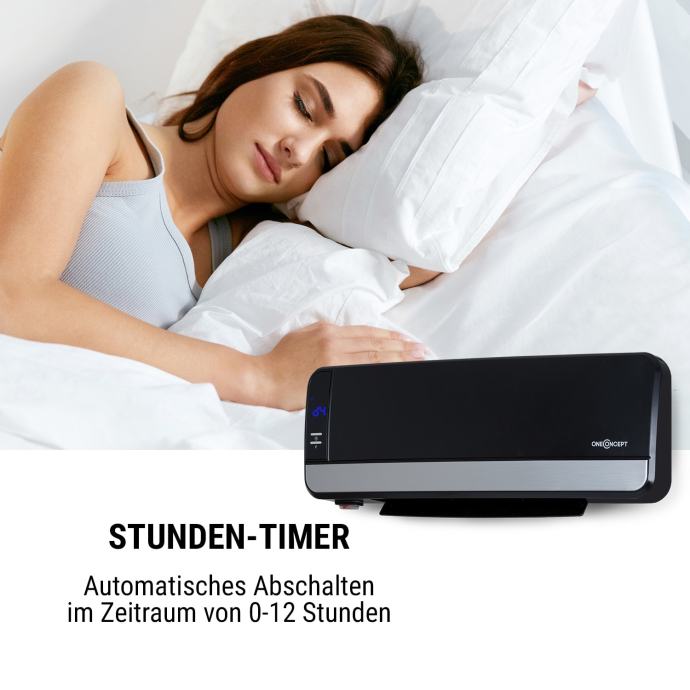 Stenski grelnik oneConcept Wallkyrie zanesljivo zalaga polni vaše sobe s prijetno temperaturo zahvaljujoč visoki zmogljivosti in številnim funkcijam.Stenska grelna napravaWallkyrie, opremljena z 2 - stopenjskim grelnikom z zmogljivostjo 1000 W, oziroma 2000 W prinese v vsak prostor prijetne temperature. Vgrajen termostat z zaščito proti pregrevanju se lahko nastavi med 10 in 49 °C in avtomatično ugotovi, kdaj je za doseganje zahtevane temperature v prostoru potrebna močna ali majhna zmogljivost. Na razpolago je tudi tedenski režim nastavitve časa, ki omogoča želeno programiranje časa ogrevanja za vsak dan v tednu, pri čemer urna nastavitev časa zagotavlja avtomatični izklop v času od 0 - 12 ur. Zahvaljujoč tehnologiji HeatSpreadOscillation se zrak razporeja enakomerno po celem prostoru ali udobno s pomočjo daljinca. Grelnik z razredom zaščite IPX2 se dobavi s setom za stensko montažo in se namesti v nekaj enostavnih korakih.Stenski grelnik oneConcept Wallkyrie: kompakten in učinkovit posrednik temperature v lepem dizajnu.