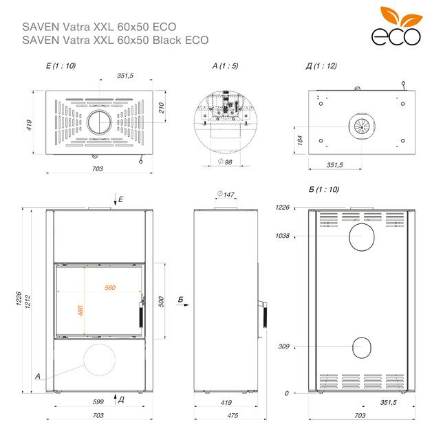 Glavne prednosti kaminske peči SAVEN Vatra XXL 60x50 ECO so: