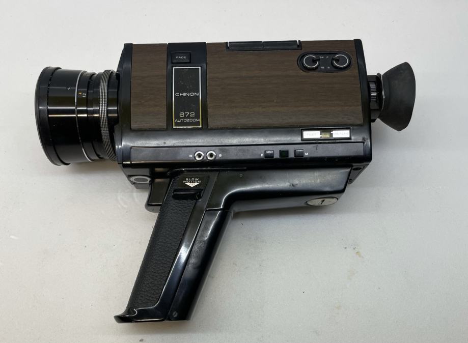 Zelo lepo ohranjena kamera skupaj s pripradajočim kovčkom, več podatkov na povezavi https://www.filmkorn.org/super8data/database/cameras_list/cameras_chinon/chinon_672.htm