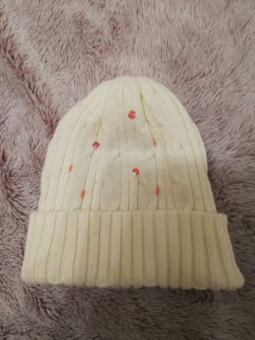 Otroška kratka kapa . Bele barve - kitke . Cena: 2,5 €