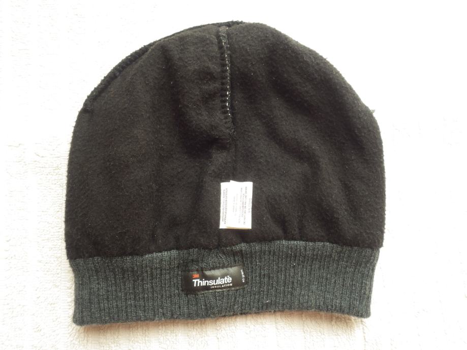 Temno siva kapa s svetlejšim robom in še svetlejšo sivo črto, topla, podložena s thinsulate insulation.